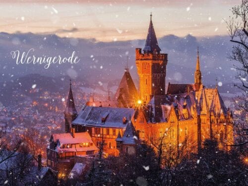 Rathaus mit Marktplatz bei Nacht (Postkarte)